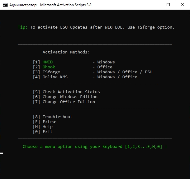Активатор для Windows Microsoft Activation Scripts (MAS) 3.8 portable