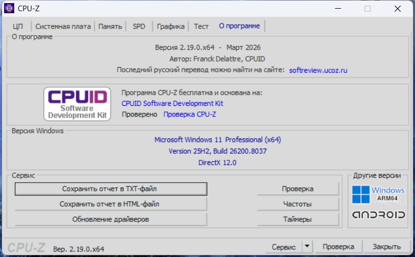 Торрент CPU-Z 2.19.0 Portable [Ru] подробно: