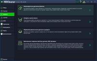 • При использовании HDCleaner получит разносторонний пакет инструментов для очистки жестких дисков компьютера, реестра Windows, чистки временных файлов, уничтожения следов использования, безвозвратного удаления, удаления установленных приложений, находит и удаляет плагины, очищает браузер и много другого.