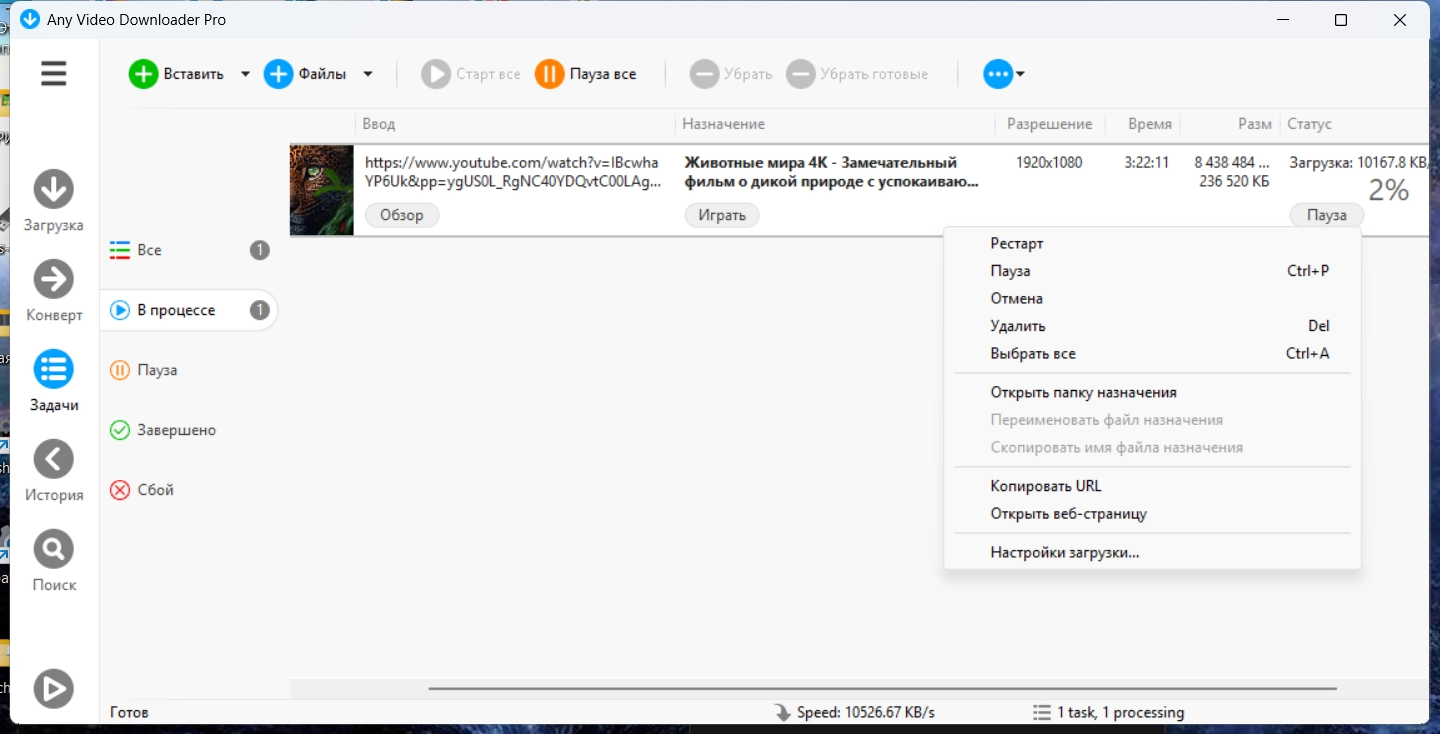 Any Video Downloader Pro - это приложение для Windows, которое поможет вам загружать видео с YouTube, Facebook, Dailymotionи многих других сайтов обмена видео. Это ускоряет ваши загрузки до 5 раз. В программе есть возможность конвертировать видео и плеер для их просмотра.