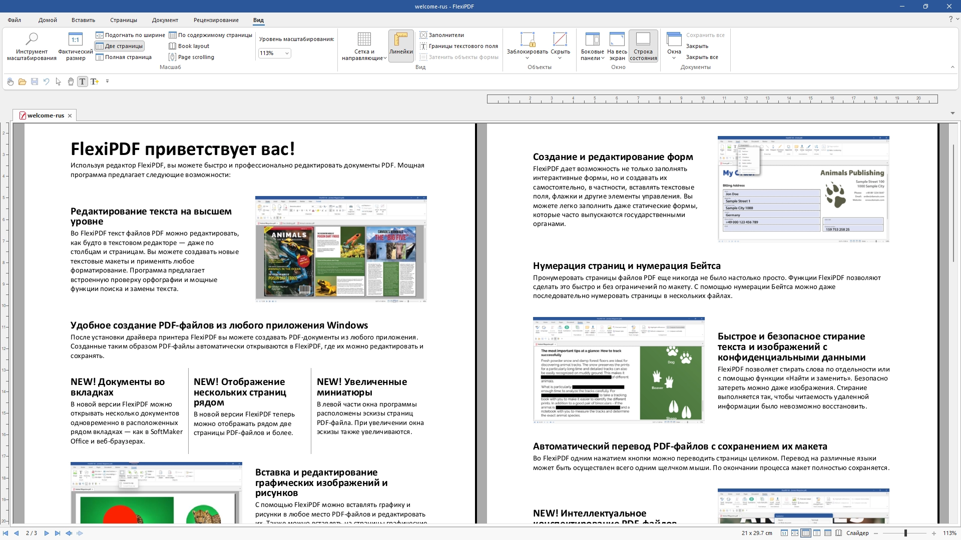 Программа FlexiPDF позволяет редактировать и переформатировать текст (даже в нескольких колонках), манипулировать графикой, изображениями и страницами в любых PDF-файлах. С помощью SoftMaker FlexiPDF можно обновлять бюллетени, брошюры, технические руководства и т.д., созданные в формате PDF, без потребности иметь оригинальный документ и шрифты, которые в нем использовались. С помощью мощной функции поиска и замены можно заменять отдельные части (верхний и нижний колонтитулы, например) сразу во всех страницах документа.