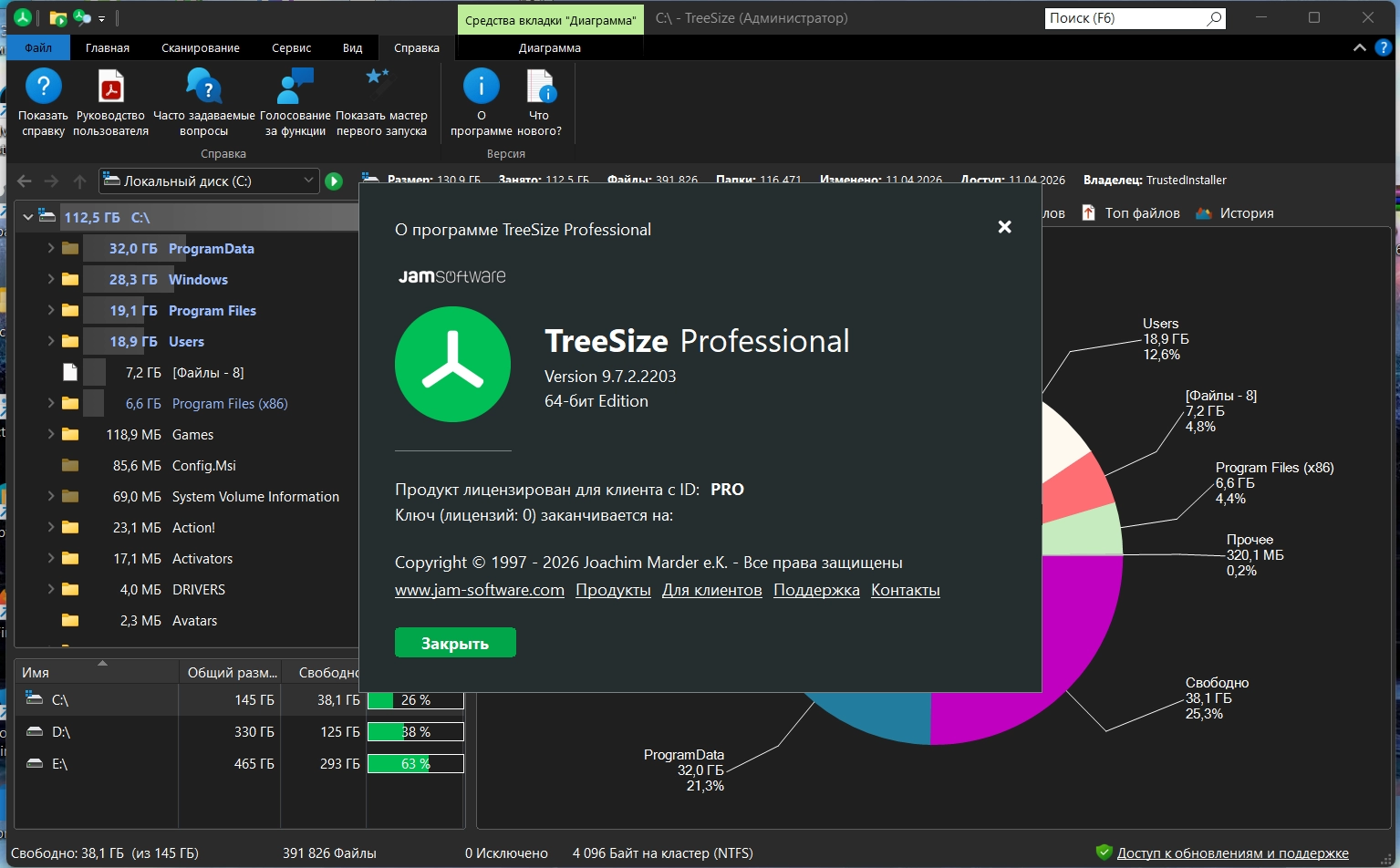 Торрент TreeSize Professional 9.7.2.2203 by elchupacabra подробно: