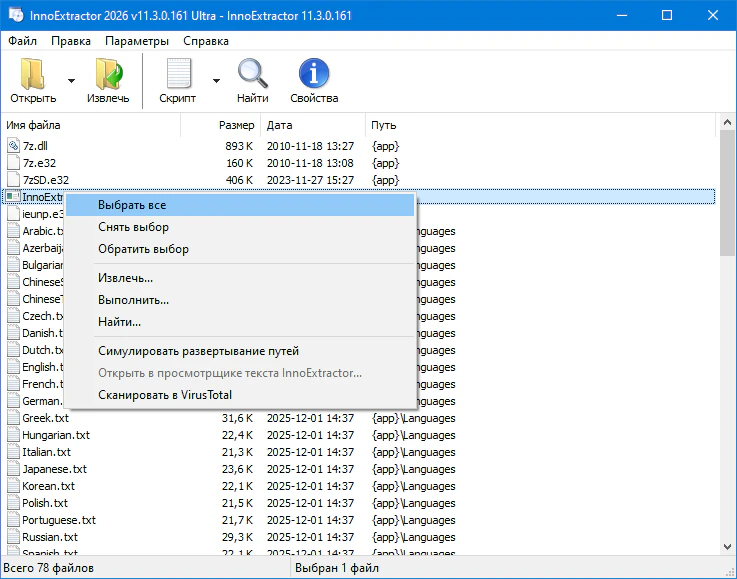 С помощью InnoExtractor вы можете изучить внутреннюю структуру и содержимое программы установки, а также извлечь их в локальную папку или на портативные устройства без необходимости запуска программы установки.