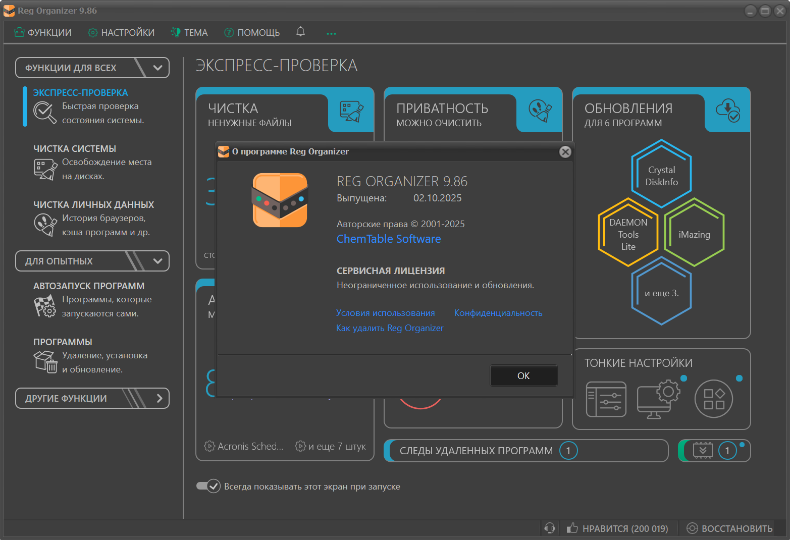 Reg Organizer® - это многофункциональная программа для комплексного обслуживания системного реестра операционных систем Microsoft Windows. Позволяет проводить чистку реестра, его сжатие и дефрагментацию. Имеет мощный редактор системного реестра и расширенную функцию поиска и замены данных. С помощью утилиты Reg Organizer можно осуществлять предварительный просмотр импортируемых reg-файлов (в том числе и из Проводника). Кроме того, позволяет производить полное удаление программного обеспечения (основана на технологии Full Uninstall™), подчищая все "хвосты", которые остаются в системе при обычном удалении.