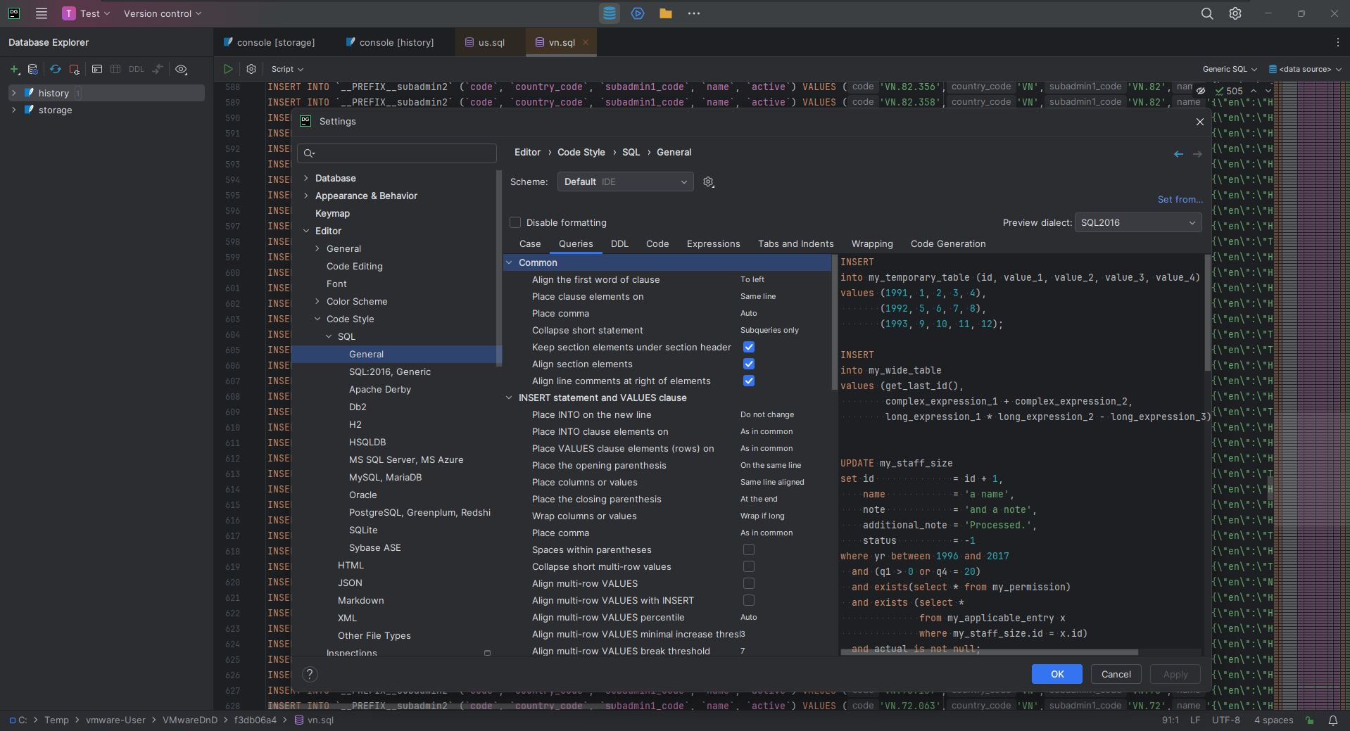 Консоль запросов в DataGrip является базовой необходимостью для любого разработчика SQL. Создайте несколько консолей, каждая со своей схемой и параметрами запроса.