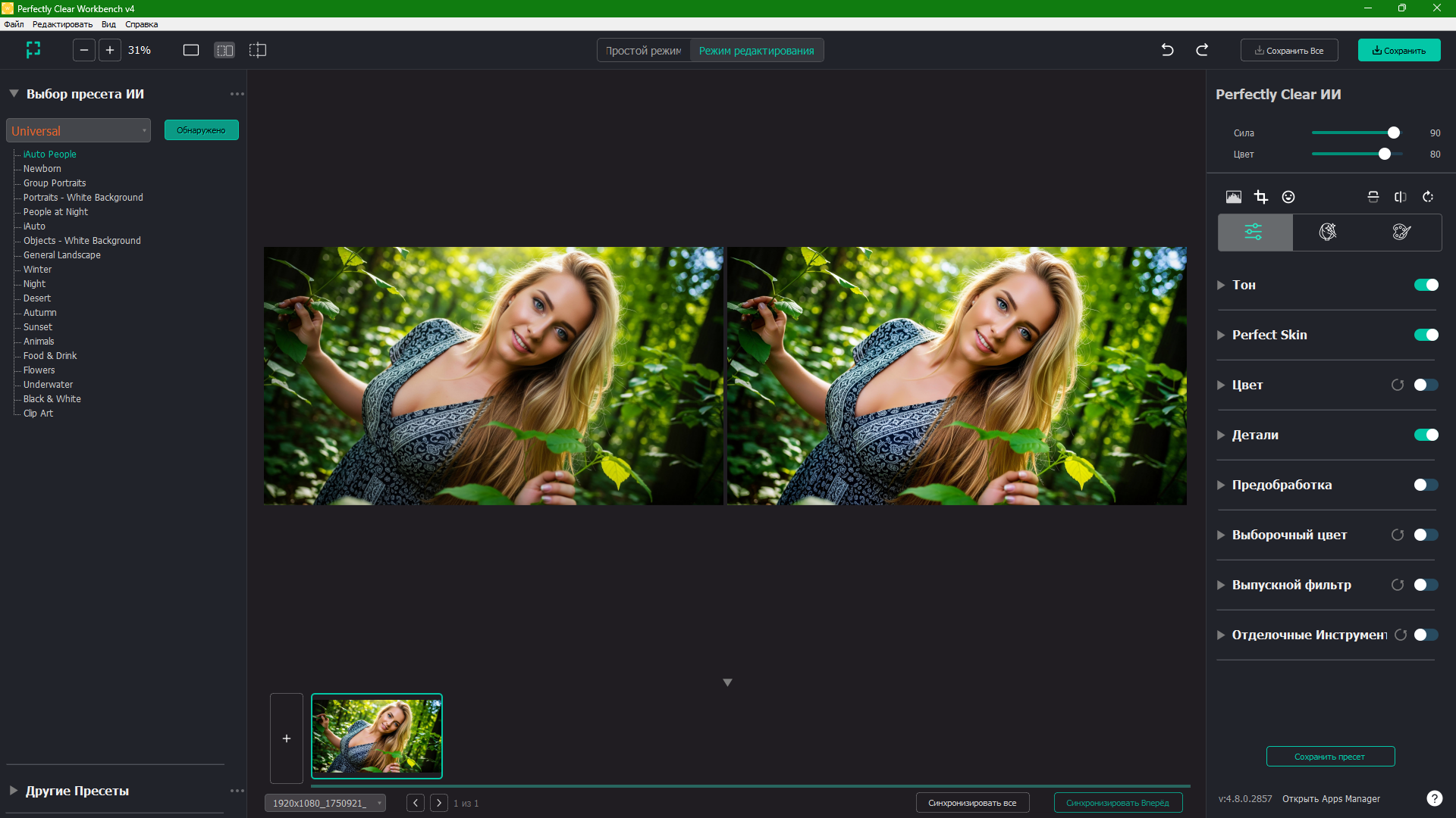 Традиционные методы исправления изображений не всегда приводят к желаемому результату. Данный продукт заслуживает вашего внимания, чтобы доверить ему автокоррекцию своих фото с бесценными воспоминаниями. Perfectly Clear даст вам возможность мгновенно довести фотографию до совершенства. Просто запустите плагин и выбранные фотографии будут автоматически исправлены.