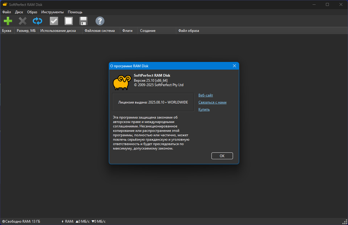 Торрент SoftPerfect RAM Disk 25.10 by KpoJIuK подробно: