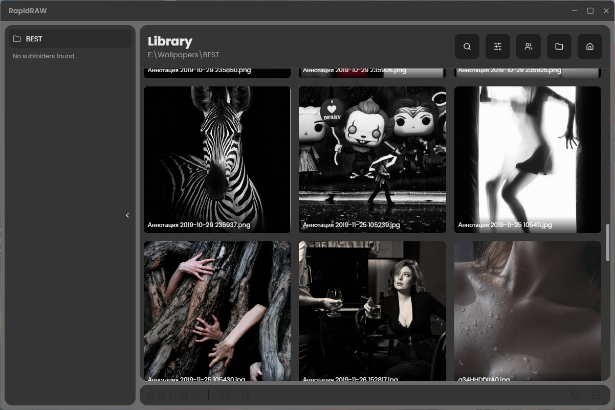 RapidRAW — это современная высокопроизводительная альтернатива Adobe Lightroom®. Она обеспечивает простое и эффективное редактирование в лёгком пакете (менее 20 МБ) для Windows, macOS и Linux.