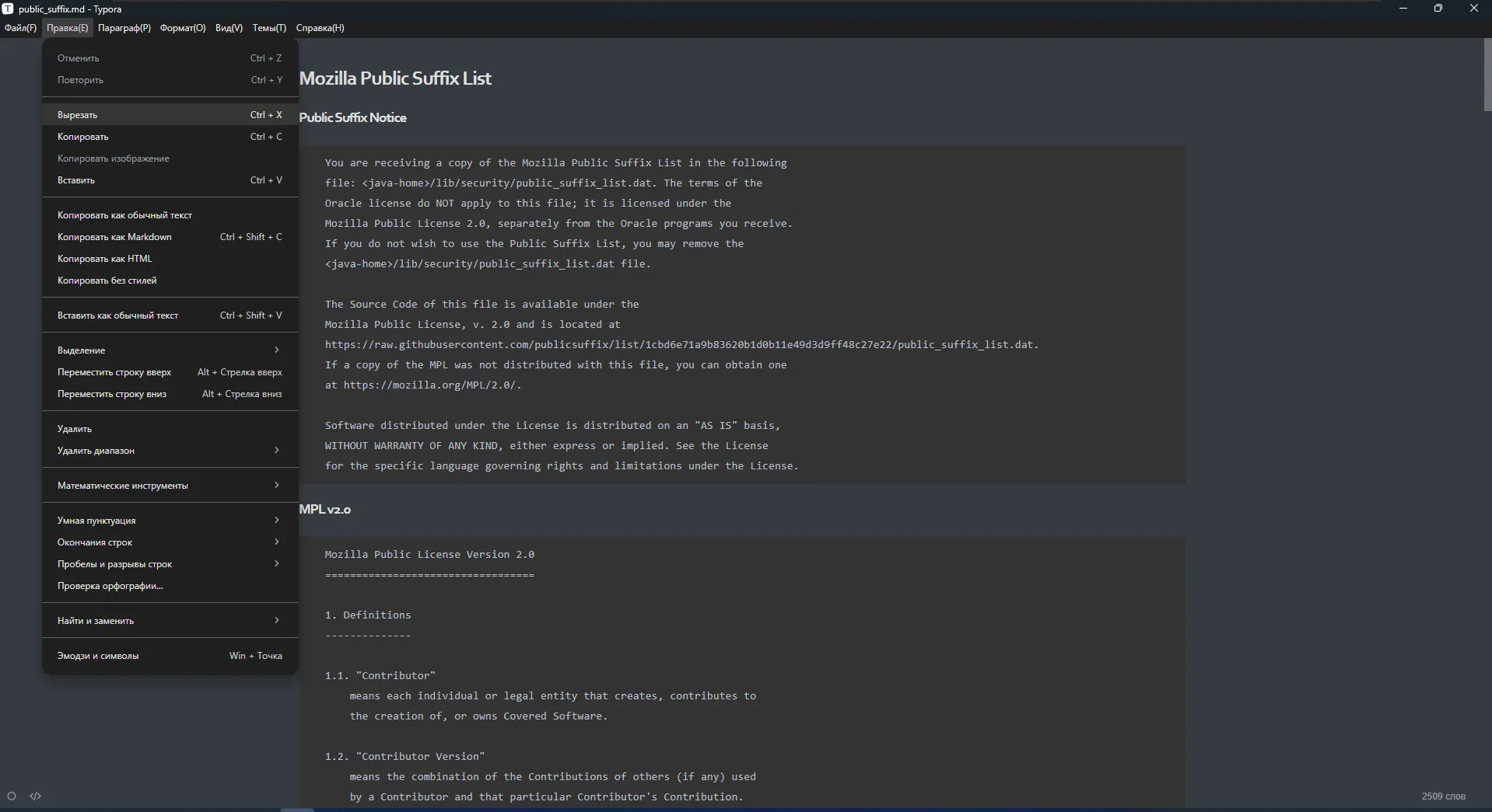 📚 Экспорт — сохранение в HTML, PDF, DOCX, EPUB, LaTeX и другие форматы.