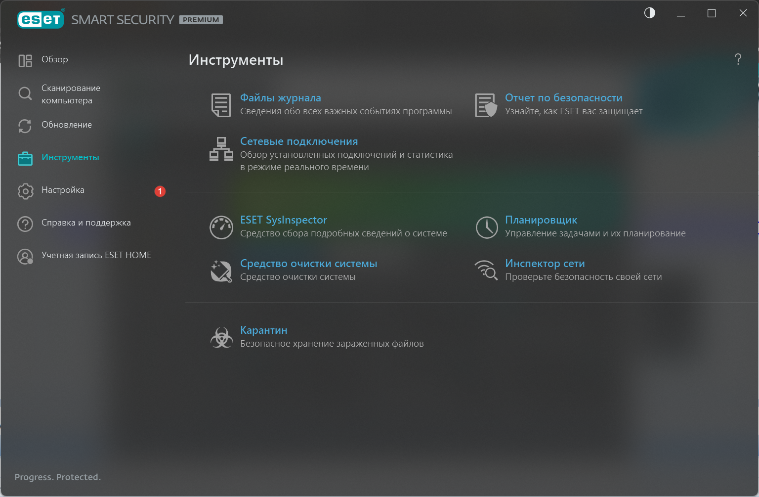 Уровень защиты и все действия и инструменты доступны со всех экранов. В случае любых предупреждений о безопасности решение можно найти одним нажатием мыши.