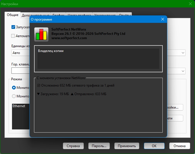 SoftPerfect NetWorx - утилита для учета интернет-трафика и мониторинга скорости Интернета на вашем компьютере. Программа работает с любым кабельным или беспроводным подключением, а также модемом, предоставляя удобную статистику, отчеты и графики. Вы сможете измерить реальную скорость и загрузку вашего интернет-подключения, просматривать ежедневные, недельные и месячные отчеты и получать уведомления о перерасходе трафика.