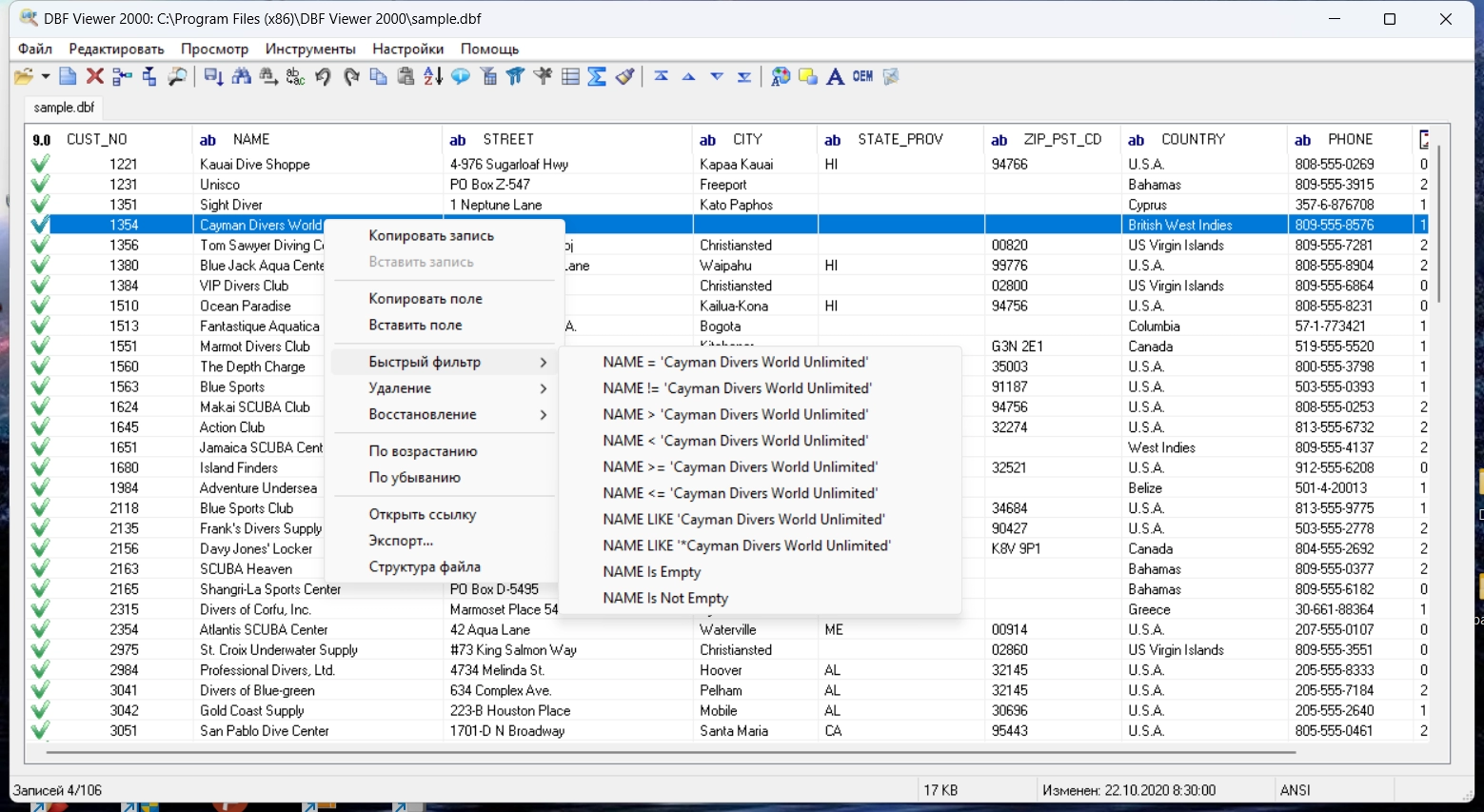 DBF Viewer 2000 предлагает расширенные возможности для экспорта