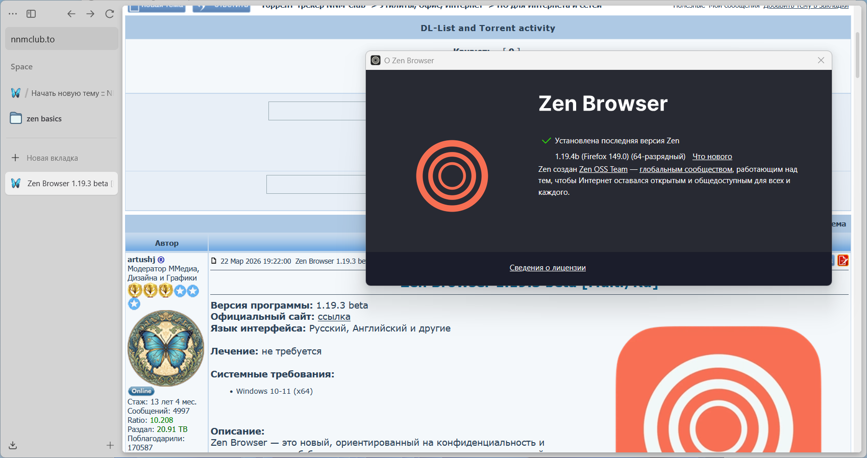 Скачать Zen Browser 1.19.4 beta через торрент: