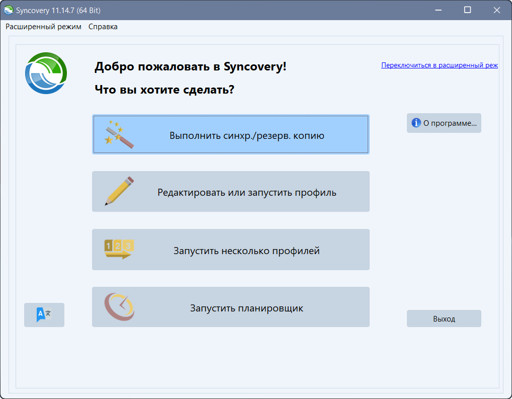 • Synccovery отличается тщательно разработанным графическим интерфейсом пользователя, что делает его чрезвычайно универсальным инструментом синхронизации и резервного копирования. Богатый функционал удовлетворяет всем типичным потребностям пользователей, оставаясь при этом простым в использовании.