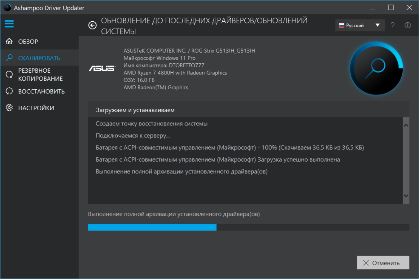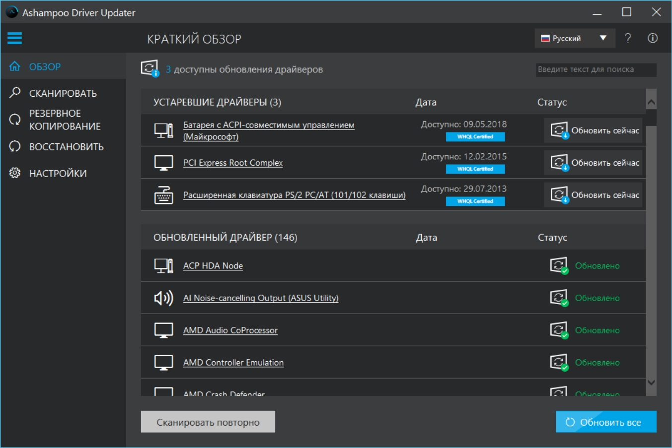 • Удобные функции резервного копирования и восстановления драйверов