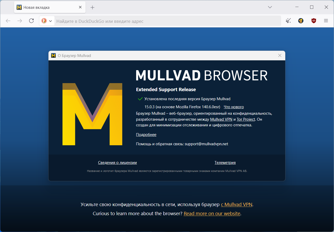 • Интегрированы дополнения uBlock Origin и Mullvad Browser Extension.