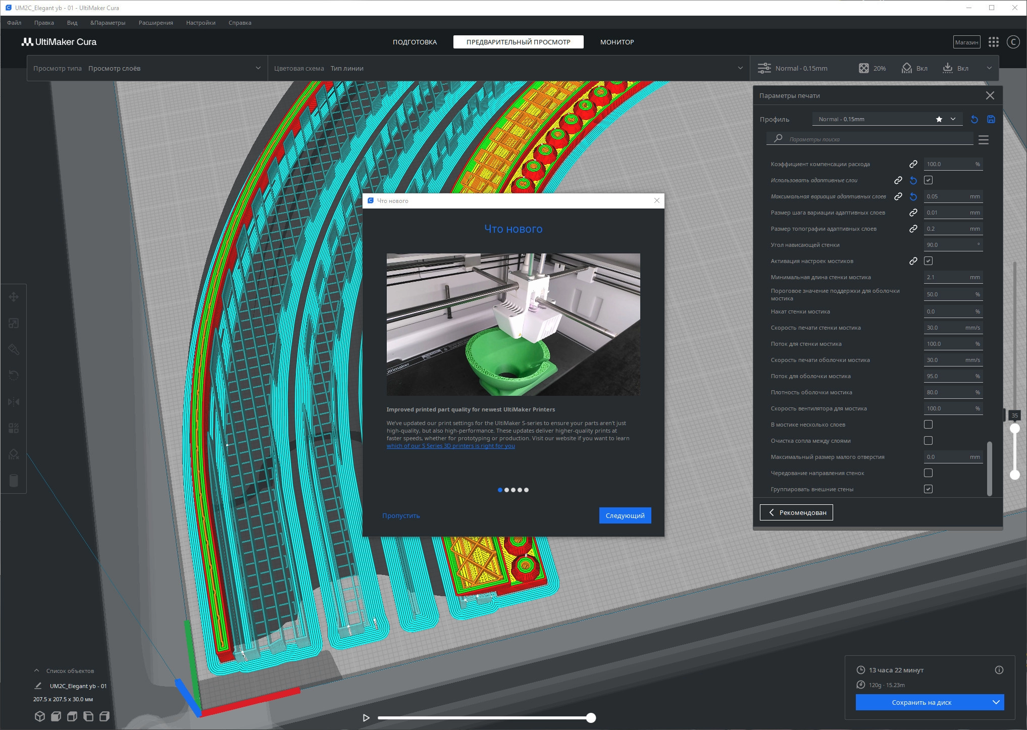 Ultimaker Cura - популярный слайсер для 3d-печати. Отлично подходит как для начинающих домашних пользователей, так и для небольших офисных работ. Имеет готовые шаблоны для печати и дружелюбный интерфейс.