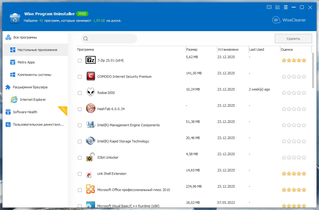 • Анализирует файлы, папки и записи реестра для корректного удаления программ.