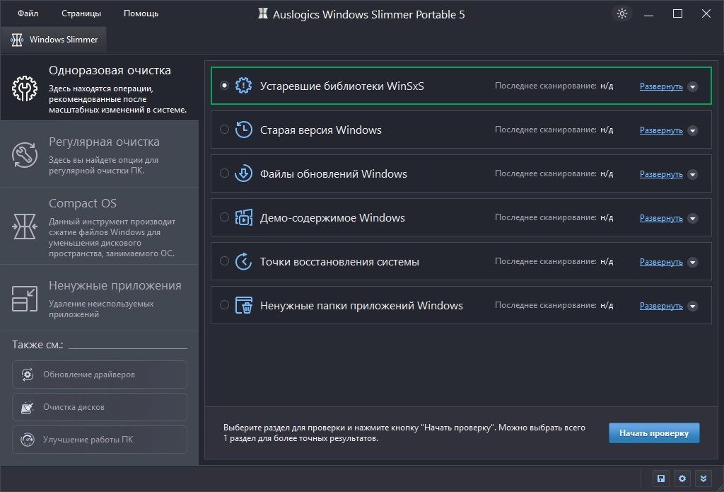 Auslogics Windows Slimmer предлагает быстрый и простой способ сделать Windows компактнее и эффективнее. Уменьшите размер системы для экономии дискового пространства и оптимизации производительности.