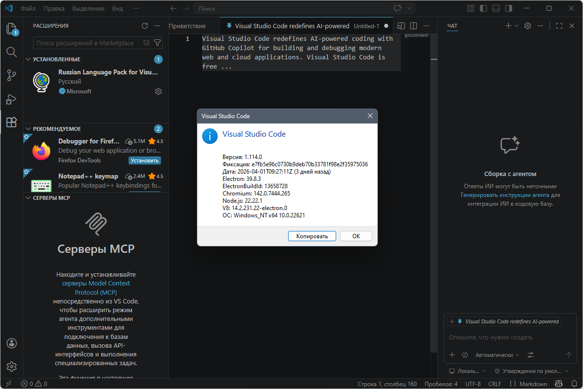 • Установщики "VSCodeUserSetup-arm64-1.114.0.exe" и "VSCodeUserSetup-x64-1.114.0.exe" предназначены для установки программы "только для текущего пользователя".