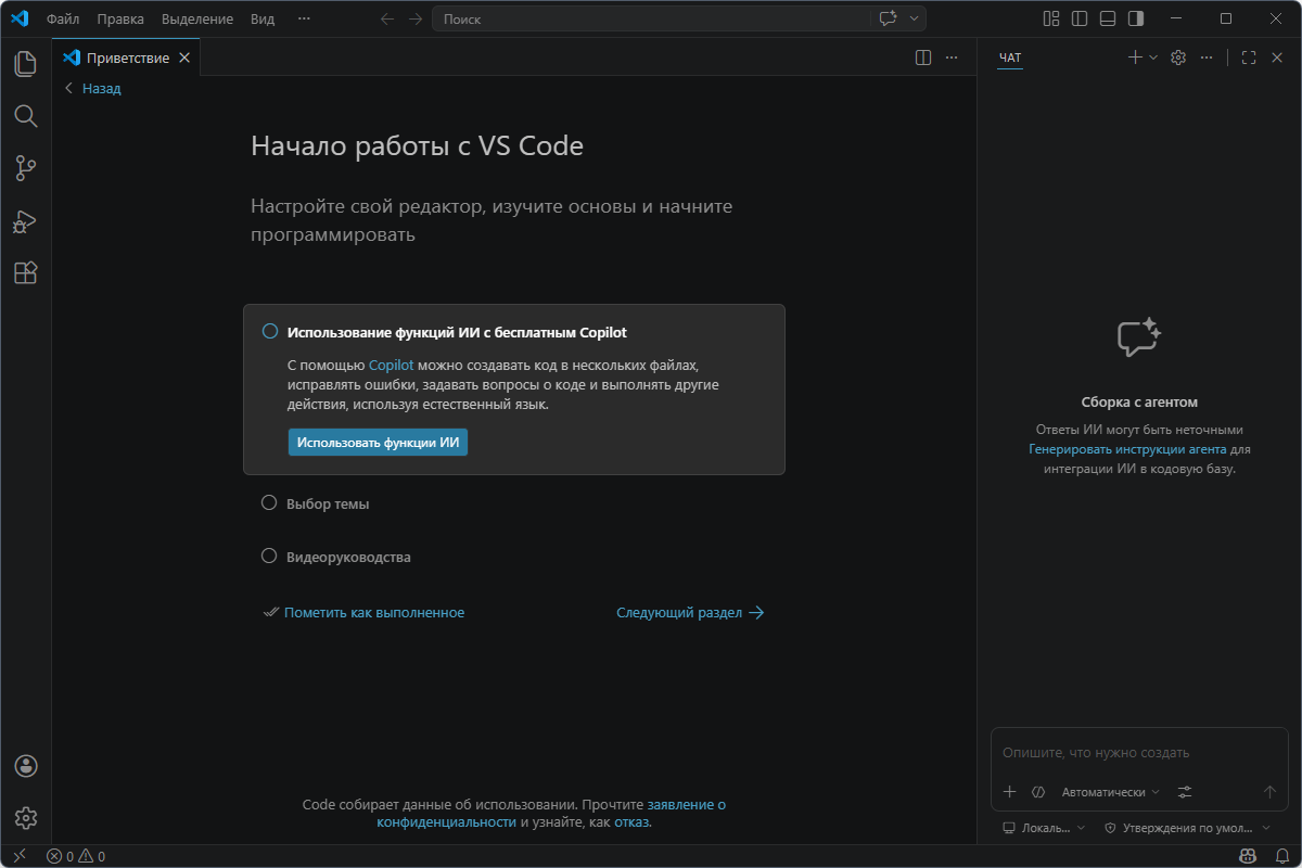Цветовые темы позволяют изменять цвета в пользовательском интерфейсе VS Code под свои предпочтения и работу Окружающая среда.