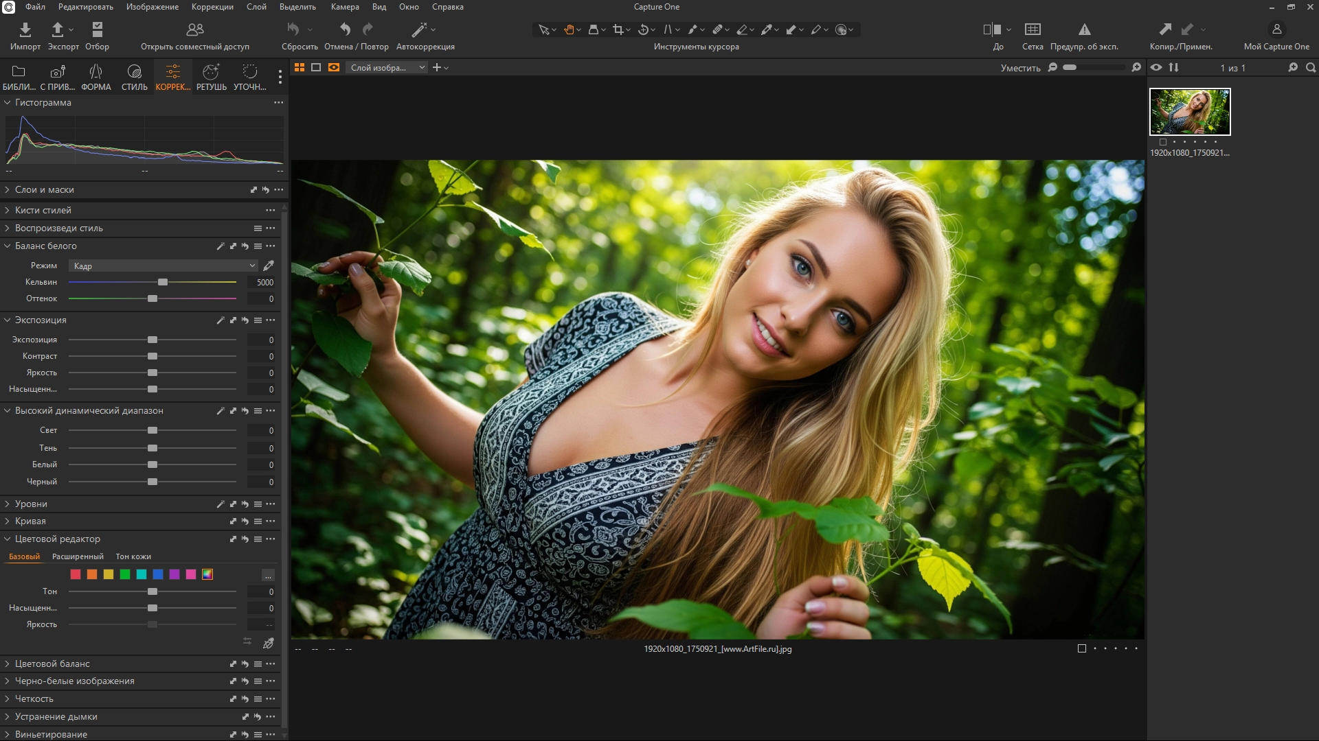 ▪ Возможность раздельного тонирования глобально или по контрольным точкам прямо на фотографии через редактор цвета.