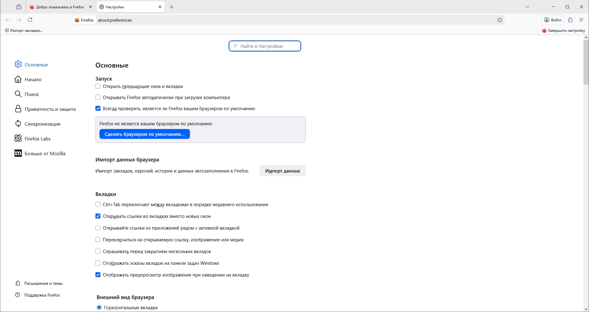 • Поддержка вкладок (несколько страниц в одном окне)