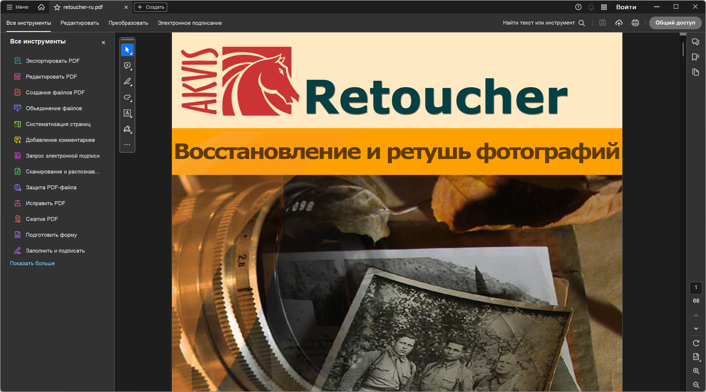 Acrobat Pro — это полностью обновленная настольная версия лучшего в мире решения для работы с файлами PDF. В состав этого решения входит мобильное приложение, позволяющее подписывать и отправлять файлы PDF, а также заполнять формы с любых устройств. А с помощью облачных сервисов Document Cloud вы сможете создавать, экспортировать, редактировать и отслеживать файлы PDF, открыв их в любом веб-браузере. Последние версии файлов всегда будут у вас под рукой независимо от того, на каком устройстве вы работаете.