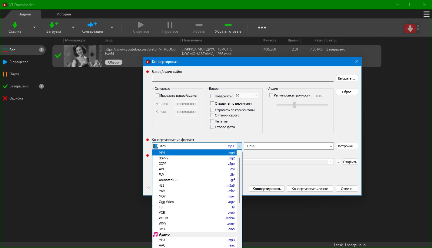 YT Downloader предоставляет готовые пресеты для всех видео-и аудиоформатов. Вы также можете настроить параметры выходного видео/аудио формата.