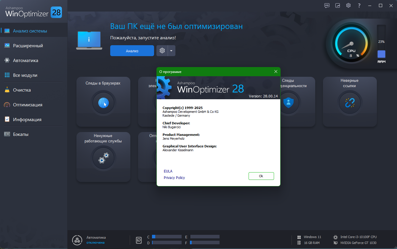 Торрент Ashampoo WinOptimizer 28.00.14 by elchupacabra подробно: