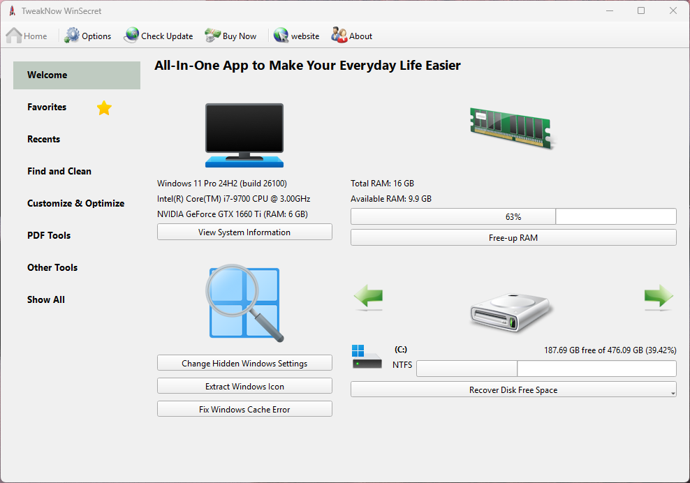 TweakNow WinSecret Plus! - позволяет пользователям исследовать скрытые настройки в Windows 10/11.