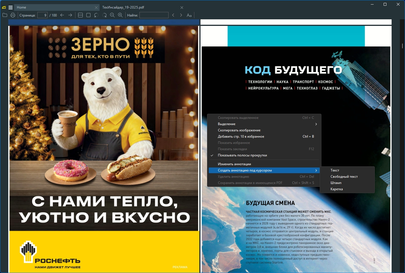 • Особенности работы с PDF обусловлены возможностями движка MuPDF, на базе которого построена программа.