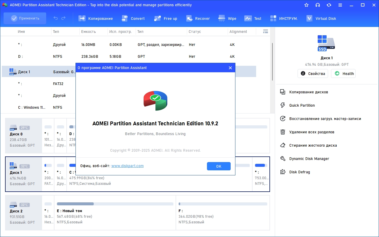 Торрент AOMEI Partition Assistant Technician Edition 10.9.2 (DC 15.12.2025) by KpoJIuK подробно: