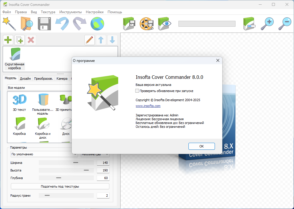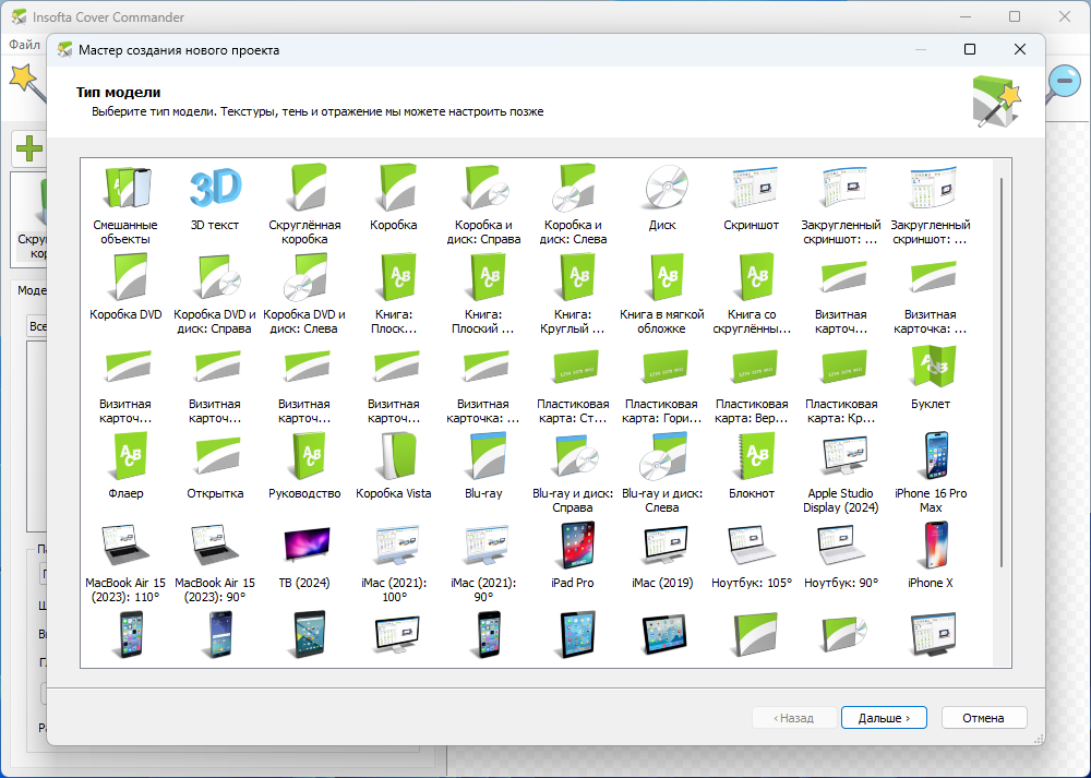 Cover Commander позволяет создавать профессиональные виртуальные коробки и упаковки; 3D изображения: DVD-коробка, Книга, 3D текст, Визитная карточка, Буклет, Ноутбук, iMac, iPhone, iPad Pro, Nexus, Blu-ray коробка, Скриншот и т.д. Всего несколько щелчков мыши всё что нужно для выполнения этой работы. Исчерпывающие настройки освещения, камеры, тени, отражения позволяют вам создать изображение любого уровня сложности и увидеть готовый результат в реальном времени в окне предпросмотра. Мастер создания нового проекта выполнит всю "грязную" работу за вас, так что вы сможете сосредоточиться на содержании вашего проекта.