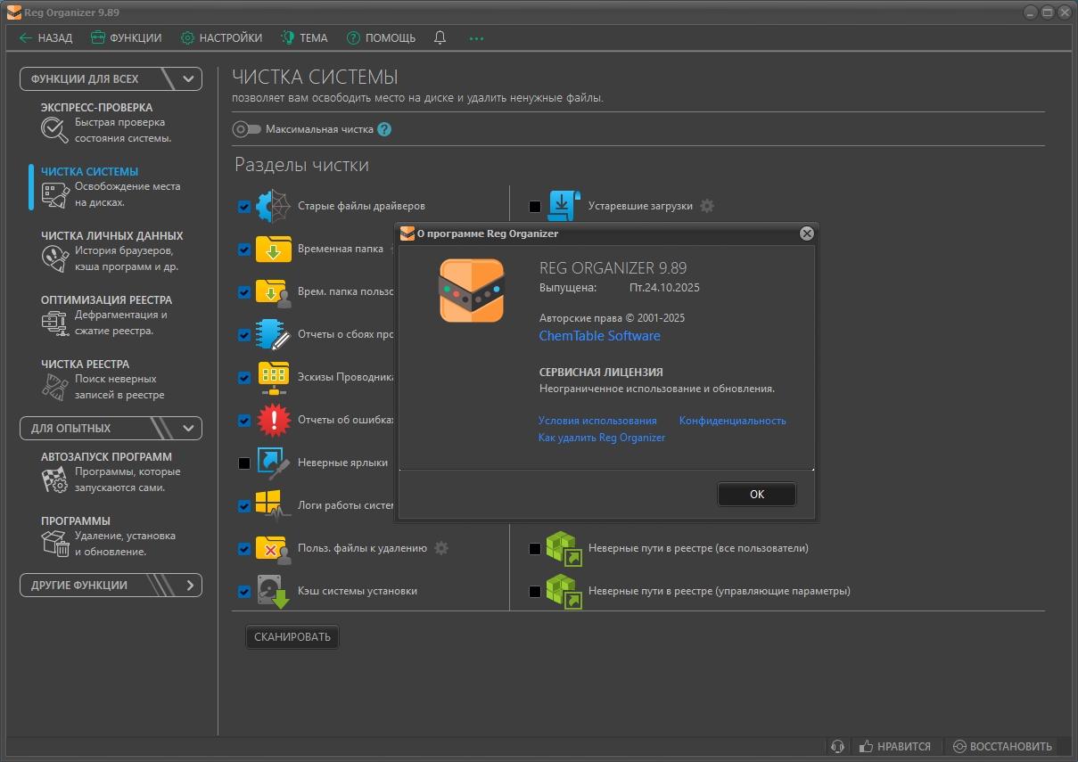 Reg Organizer® - это многофункциональная программа для комплексного обслуживания системного реестра операционных систем Micorosft Windows. Позволяет проводить чистку реестра, его сжатие и дефрагментацию. Имеет мощный редактор системного реестра и расширенную функцию поиска и замены данных. С помощью утилиты Reg Organizer можно осуществлять предварительный просмотр импортируемых reg-файлов (в том числе и из Проводника). Кроме того, позволяет производить полное удаление программного обеспечения (основана на технологии Full Uninstall™), подчищая все "хвосты", которые остаются в системе при обычном удалении.