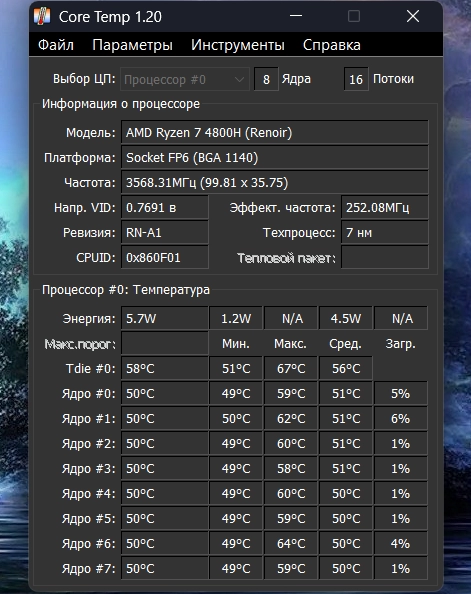 - Исправлен сбой Core Temp при запуске на некоторых процессорах AMD Ryzen с одним CCD-чипом.