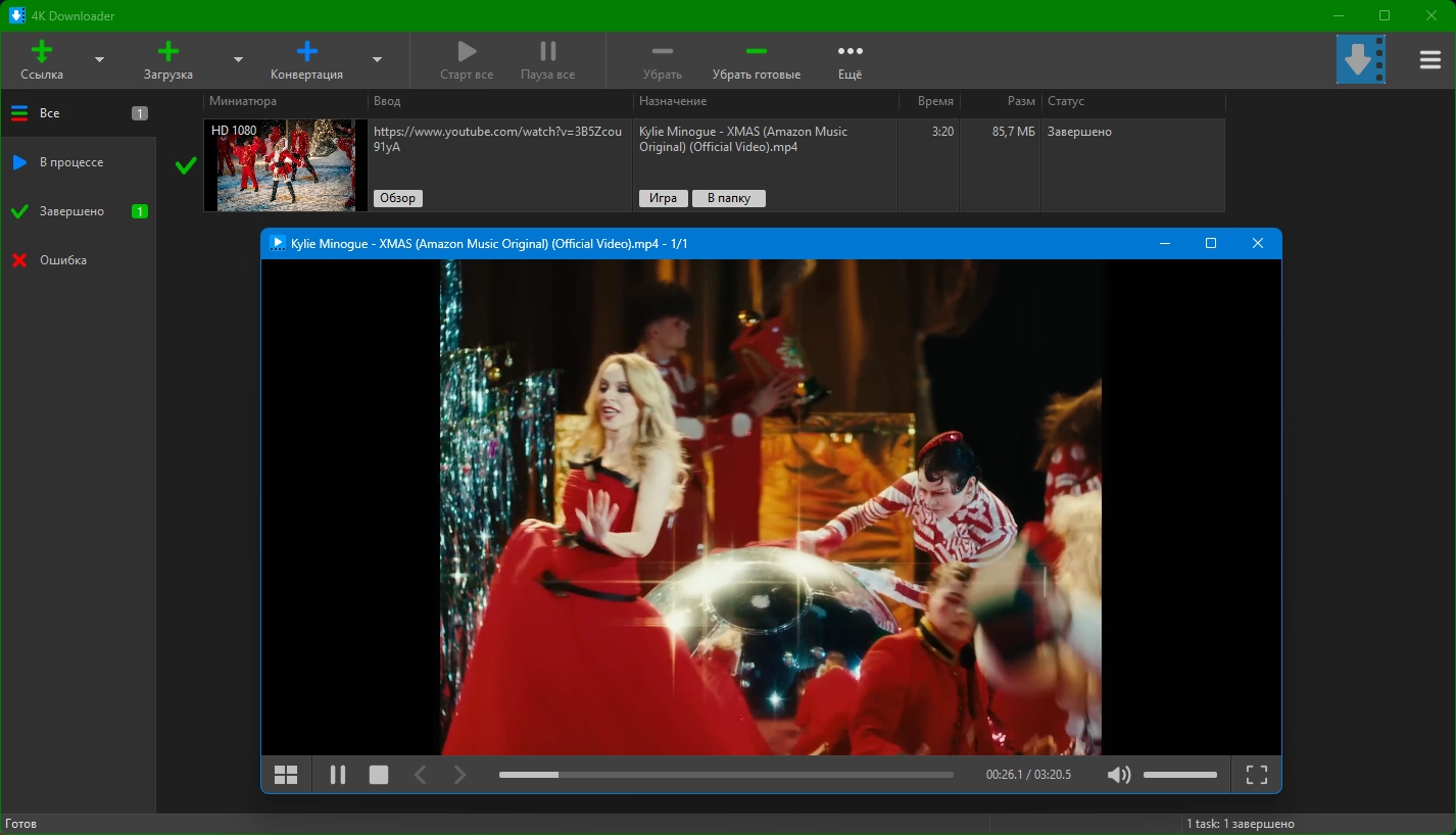 • Программа имеет современный и интуитивно понятный интерфейс, который вряд ли доставит вам хлопот. Если вы выбрали видео, которые хотите загрузить, все, что потребуется сделать, это скопировать, поскольку приложение может автоматически вставить URL-адрес. Тем не менее, вы можете указать, хотите ли вы, чтобы загрузка была только аудио, выбрать доступное качество или преобразовать его в Ultra HD. В то же время приложение позволяет вам указать, хотите ли вы сразу загрузить видео или добавить его в список задач, чтобы его можно было захватить позже. Вы будете рады узнать, что вы можете загружать списки воспроизведения и несколько файлов так же просто, как и с одним обычным видео. • Включает плеер, а также простую функцию конфертирования видео. После завершения загрузки вы можете сразу же воспроизвести его на любом устройстве по вашему выбору.