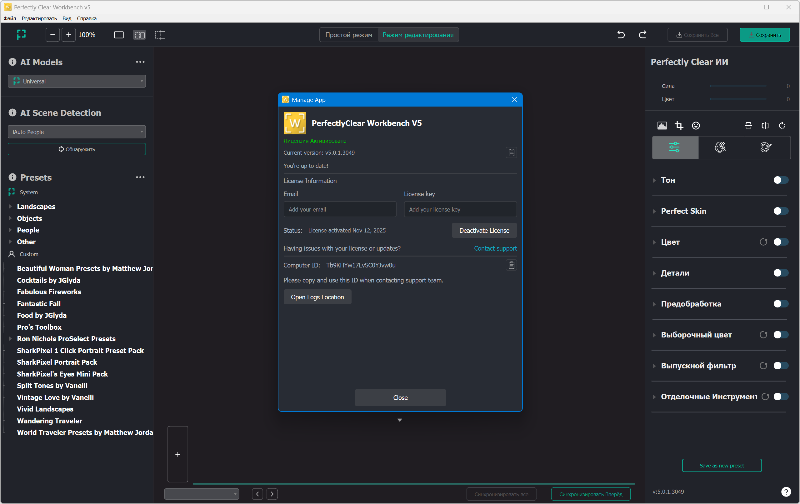 Торрент Perfectly Clear WorkBench 5.0.1.3049 + AddonsPack подробно: