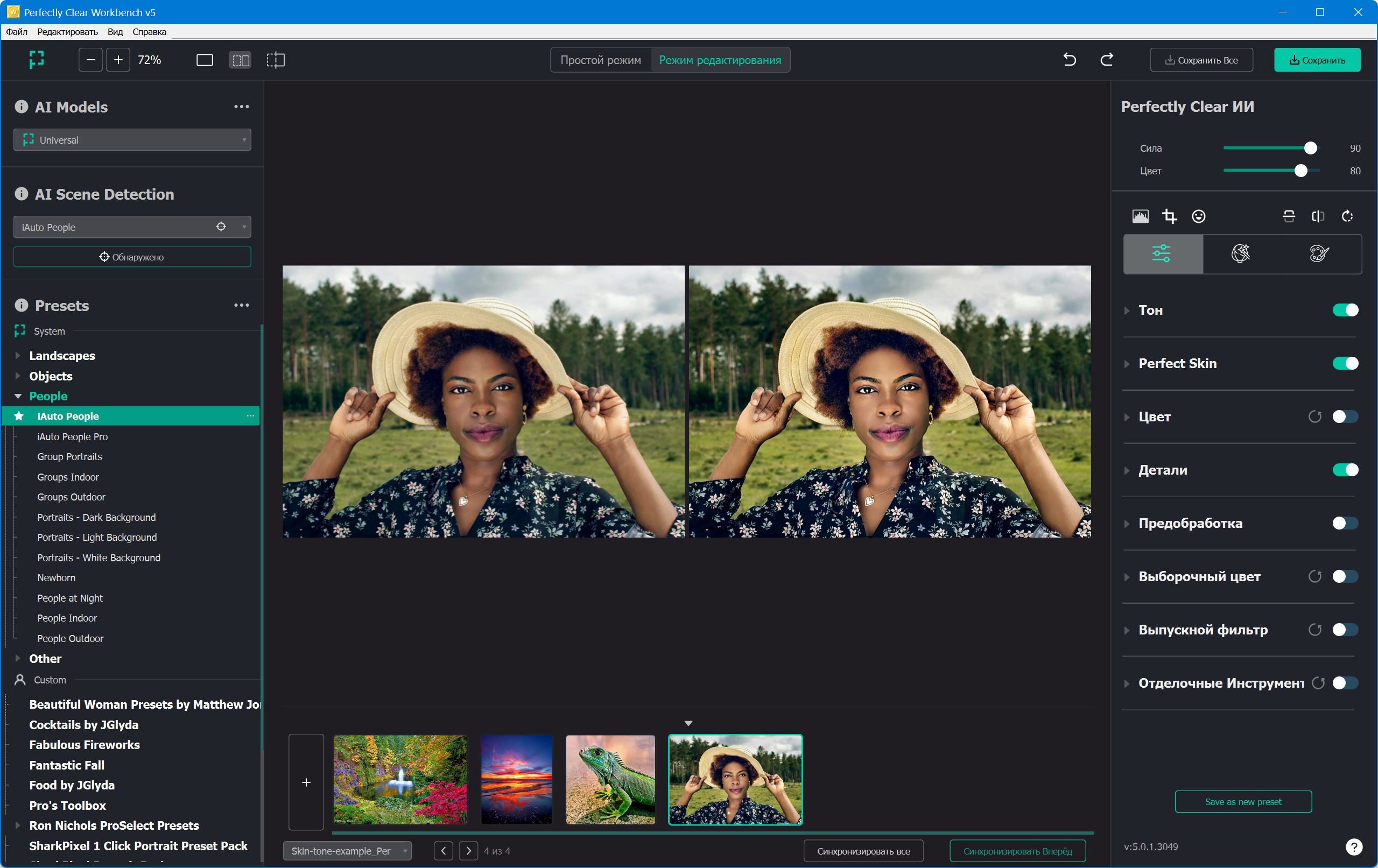 Традиционные методы исправления изображений не всегда приводят к желаемому результату. Данный продукт заслуживает вашего внимания, чтобы доверить ему автокоррекцию своих фото с бесценными воспоминаниями. Perfectly Clear даст вам возможность мгновенно довести фотографию до совершенства. Просто запустите плагин и выбранные фотографии будут автоматически исправлены.