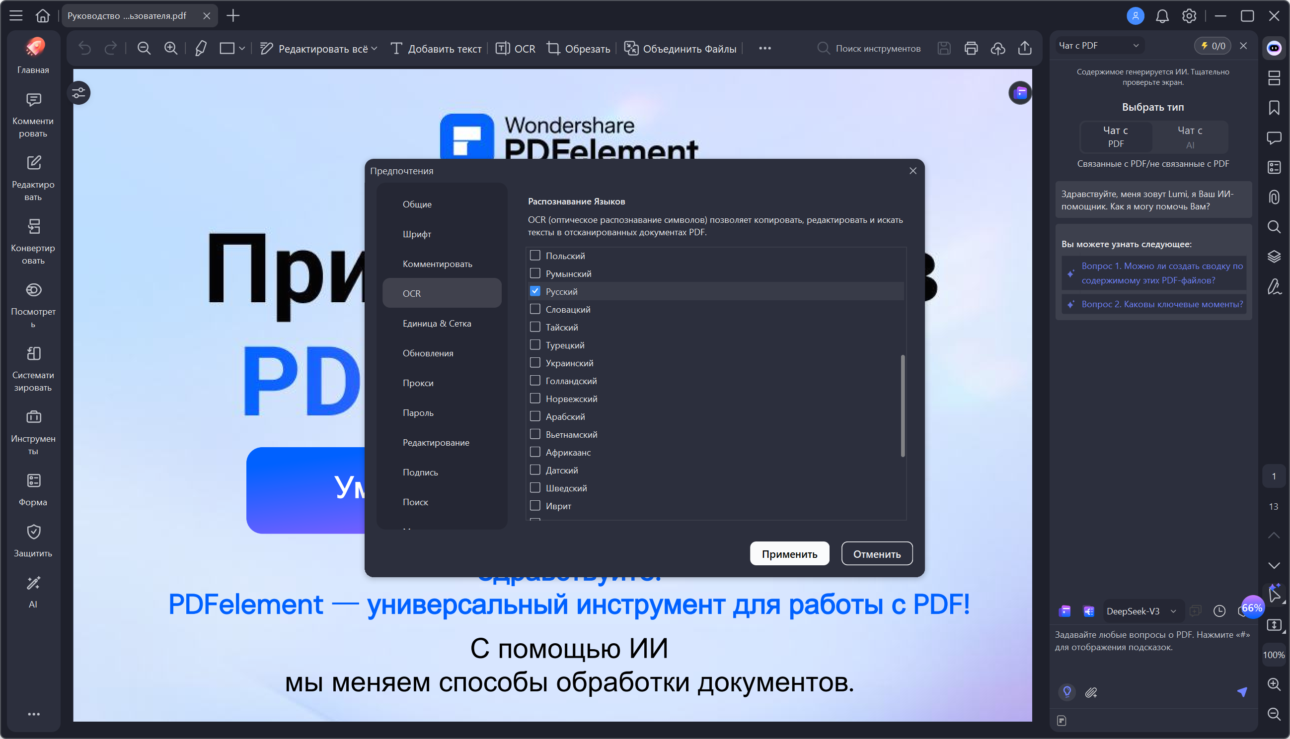 С помощью PDFelement можно редактировать текст и менять шрифты как в пакете Microsoft.