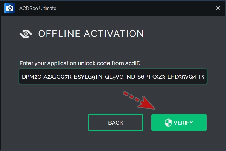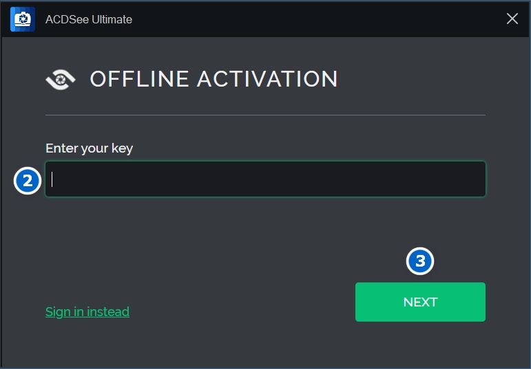 6. Сгенерированный лицензионный ключ вставить в открывшемся окне оффлайн активации и нажать NEXT: