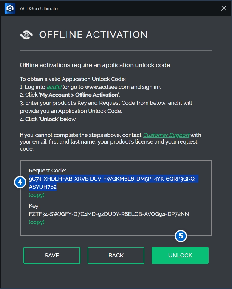 7. В следующем окне оффлайн активации появятся ваш лицензионный ключ и код активации (Request Code):
