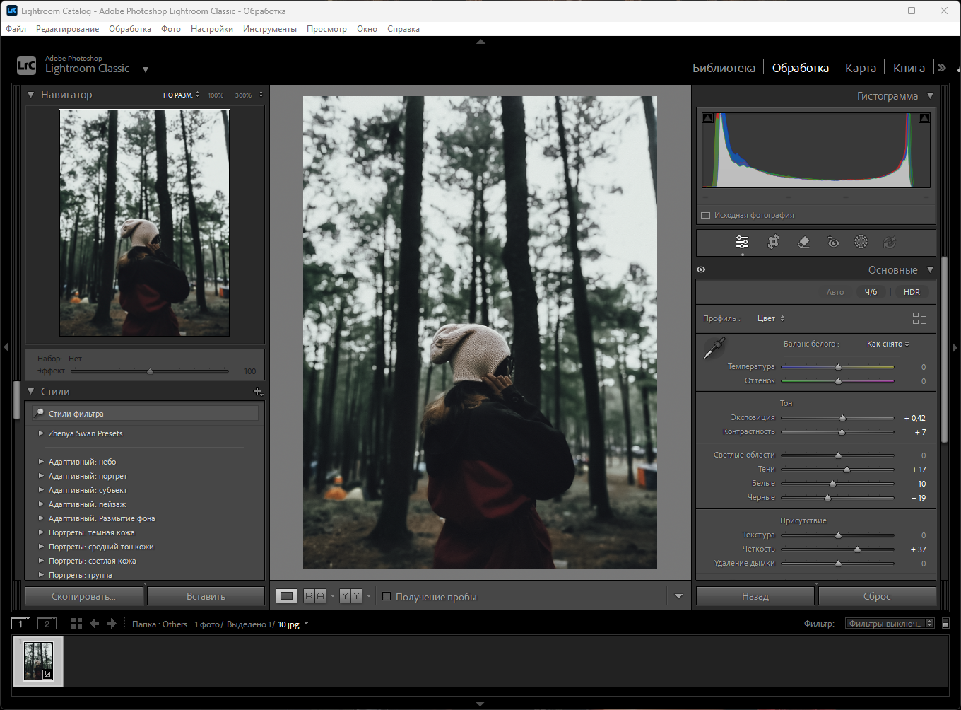 • Коррекция цветовых и тональных параметров изображений (Develop)