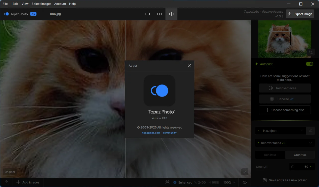 Topaz Photo - это интеллектуальное программное обеспечение для улучшения изображения, которое позволяет вам заострить детали, восстановить фокус и регулировать уровни на каждом снимке. Выбирайте из 11 инструментов на основе ИИ для совершенствования своих изображений, или начните Вашу работу при установках по умолчанию (Автопилот).