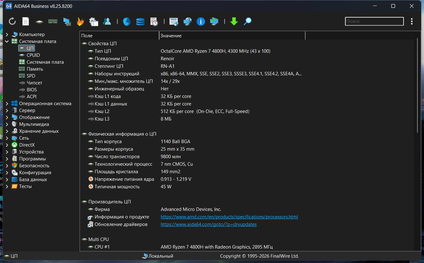 • Точная низкоуровневая информация о материнской плате и центральном процессоре