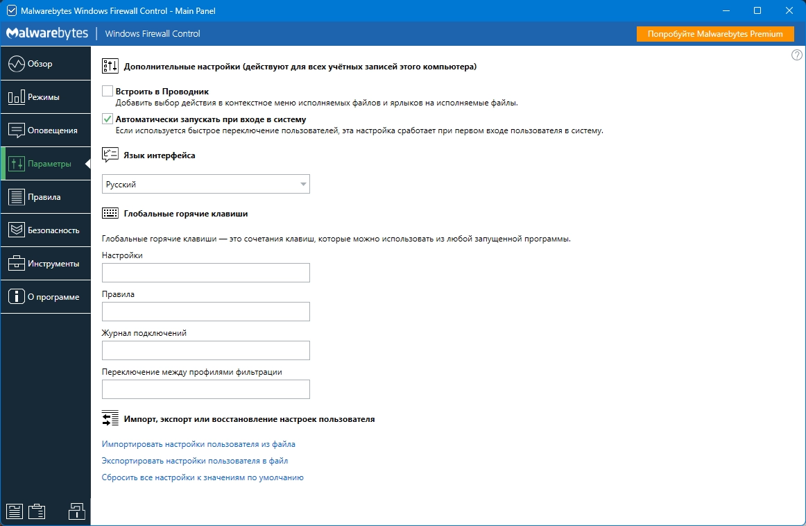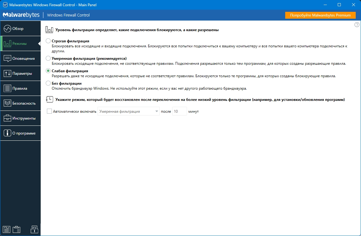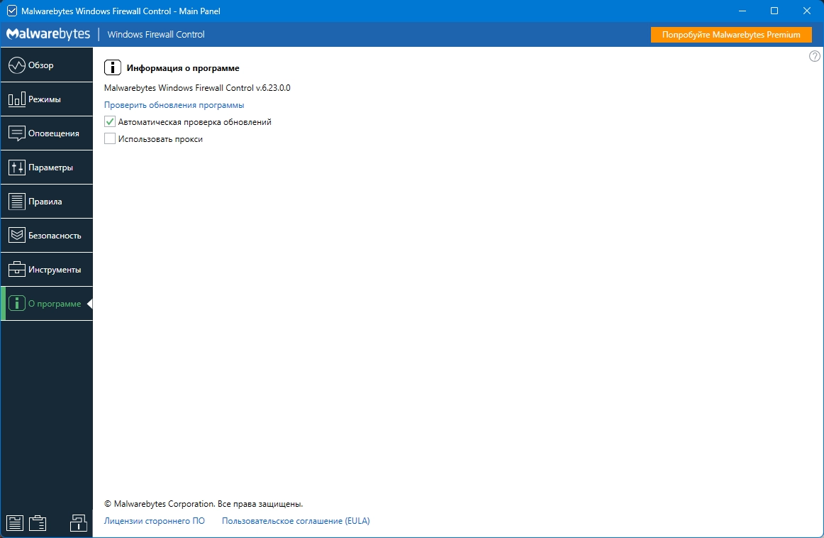Фаервол Malwarebytes Windows Firewall Control 6.23.0.0