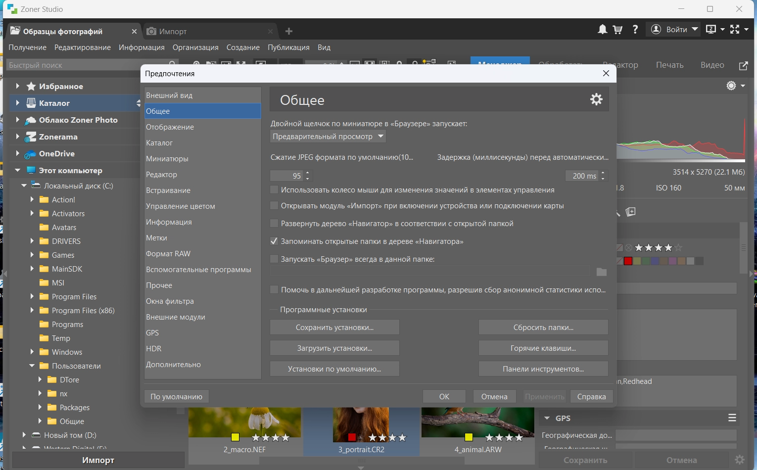 Оперативная память (RAM): Минимального объёма в 4 Гб памяти достаточно для работы над одной фотографией с разрешением до 25 Мп в модуле Редактор или Обработать. Если вы хотите обрабатывать большее количество фотографий или у вас одновременно с ZPS запущены другие приложения, например интернет браузер, мы рекомендуем минимально 8 Гб оперативной памяти.