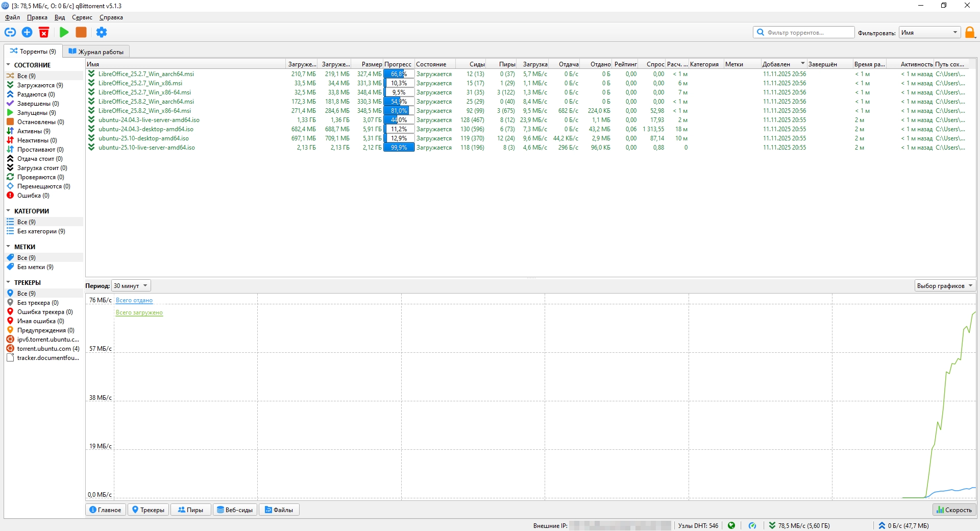 • Расширенный контроль над трекерами, пирами и торрентами