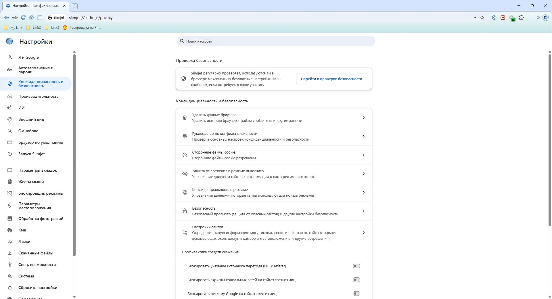 • Slimjet позволяет пользователям настраивать панели инструментов и добавлять дополнительные кнопки для быстрого доступа к расширенным возможностями и функциями.