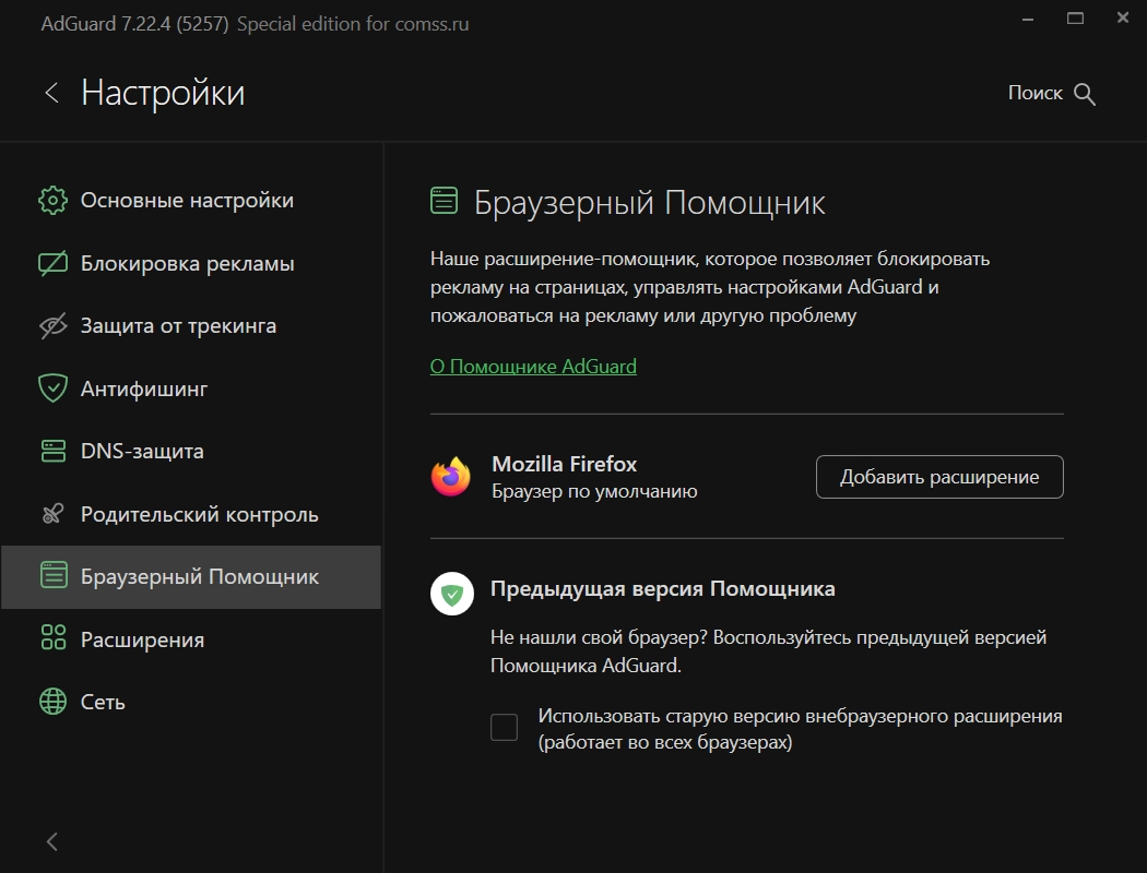 Основные компоненты и функции Adguard:
